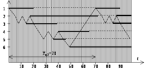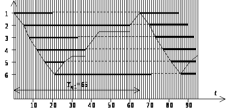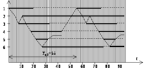 Третий вариант. Примем, что в этом случае ПР обслуживает станки с 1-го по 2-й по методике второго варианта, а начиная с 3-го по 6-й, по методике первого варианта.