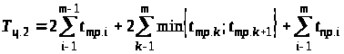 2. ПР, двигаясь от 1-го к m-му станку, одновременно разгружает и загружает станки, затем от m-го станка возвращается к 1-му, и процесс повторяется. В этом случае длительность цикла (Тц.2) определяется по формуле