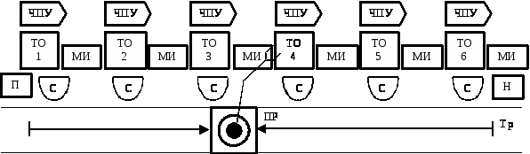 ТО – технологическое оборудование; ЧПУ – устройство числового программного управления; МИ – магазин инструментов; С – стол для деталей; ПР – подвижной промышленный робот; Тр – трасса ПР; П – питатель заготовками;