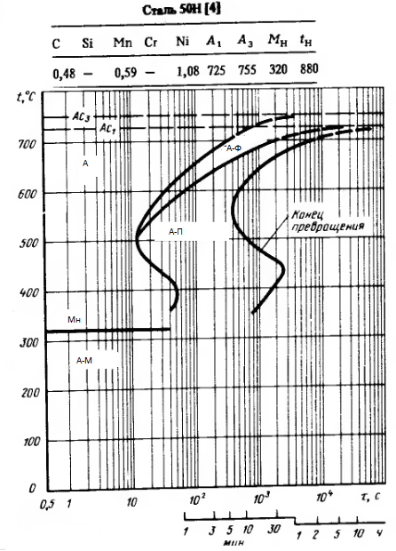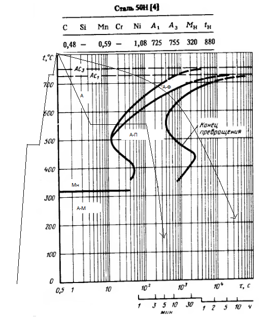 50Н – сталь доэвтектоидная легированная 0,5%С и 1%Ni.
