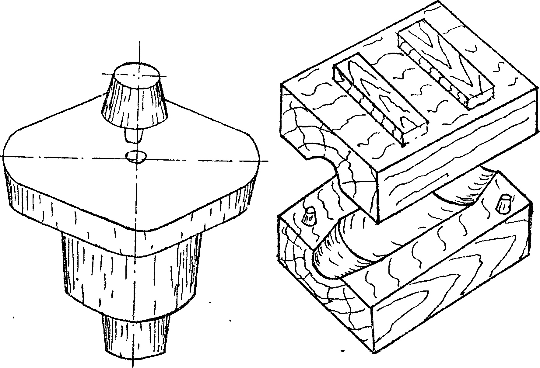 3 – стержневой ящик из двух половин; см. также рис.3;