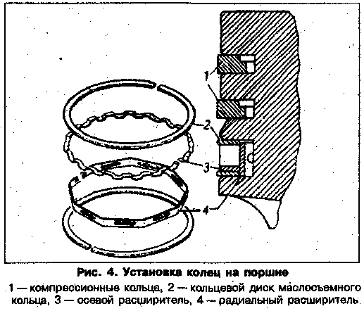 Установка колец на поршень показана на рис.4., а механизм привода клапанов на рис.5.