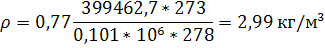 с>0> – плотность газа = 0,77 кг/м3;