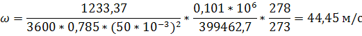 Определяем скорость газа, м/с, на входе в ПКН