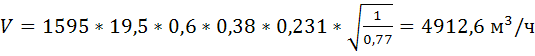 V>р> – расчетный расход газа =1233,37 м3/ч;