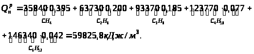 Определим по формулам (1), (2) и (3) низшую теплоту сгорания газа, плотность и число Воббе для Туймазинского месторождения: