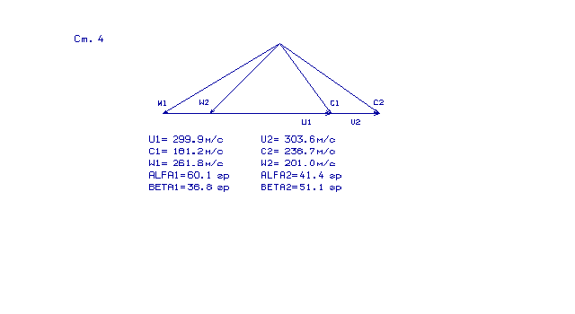 Исходными данными является газодинамический расчет осевой части компрессора. Полученные профили и планы скоростей решеток изображены на рисунках.