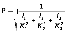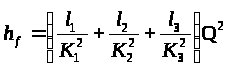 де h>f1>, h>f2>, h>f3> – втрати опору по довжині на ділянці трубопроводу з довжинами l>1>, l>2>, l>3>, діаметрами d>1>, d>2>, d>3> і витратними характеристиками К>1>, К>2>, К>3>.