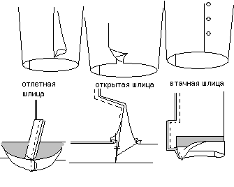 В изделиях из тонких тканей, концы листочки могут быть втачными, при такой обработке нужен подзор из основной ткани, концы листочек не обрабатывают.