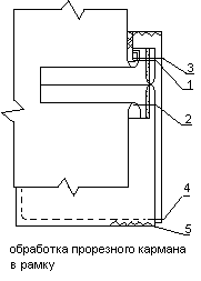 Обработка заднего кармана брюк аналогична обработке прорезного кармана, только без доливика, доливиком служит мешковина, нить основы в мешковине должна проходить поперек детали. Мешковина карманов обрабатывается так, чтобы лицевая сторона ткани была обращена на изнанку брюк, а не внутрь кармана.
