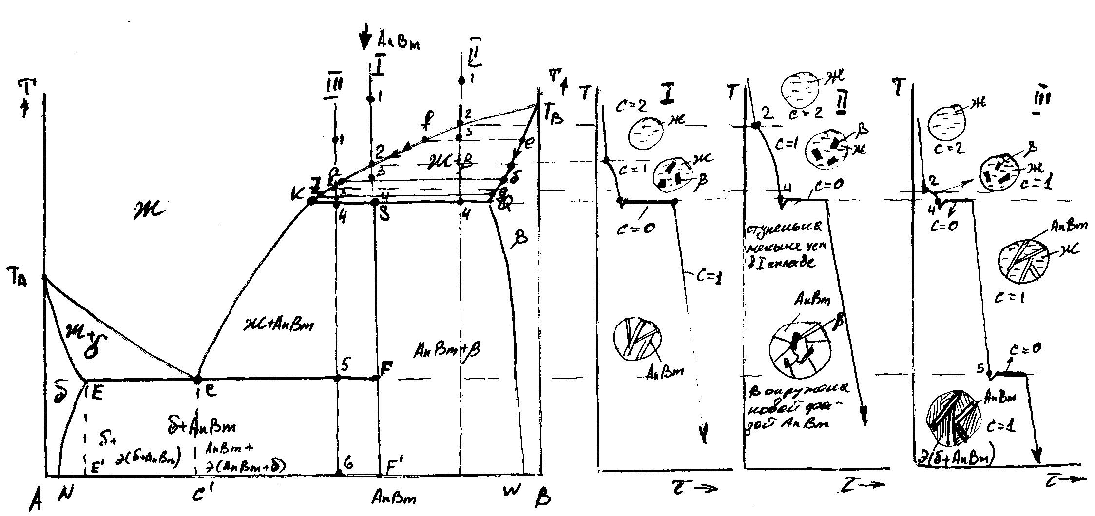 "Диаграмма состояния с перитектической кристаллизацией и образованием стойких и нестойких химических соединений"