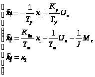 1) Начертить функциональную схему заданной части системы, вывести дифференциальные уравнения в переменных состояния всех элементов, а также заданной части системы. Численные значения параметров элементов системы: