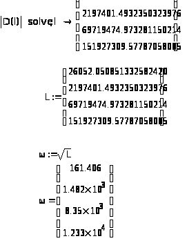 Найдём собственные частоты (ω) элементов данной системы с помощью программы MathCAD.