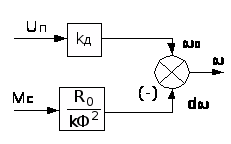 В данном случае имеем систему стабилизации напряжения, подводимого к якорю ДПТ. Полагая выходным сигналом напряжение U>д>, находим: