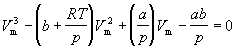 Это уравнение содержит объем в третьей степени и, следовательно, имеет или три действительных корня, или один действительный и два мнимых. При высоких температурах оно имеет один действительный корень, и по мере повышения температуры кривые, вычисленные по уравнению Ван-дер-Ваальса, приближаются к гиперболам, соответствующим уравнению состояния идеального газа.