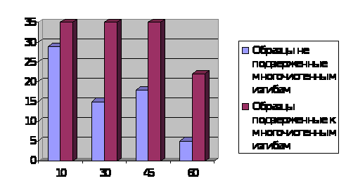 Ниже представлены диаграммы, построенные по данным таблицы 2 и 3. В следующих диаграммах очень четко видно как влияют многочисленные изгибы на прочность бумаги.