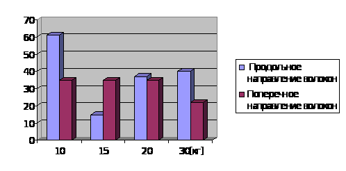 Диаграмма 1 – Вариация прочности на разрыв в зависимости от направления волокон.