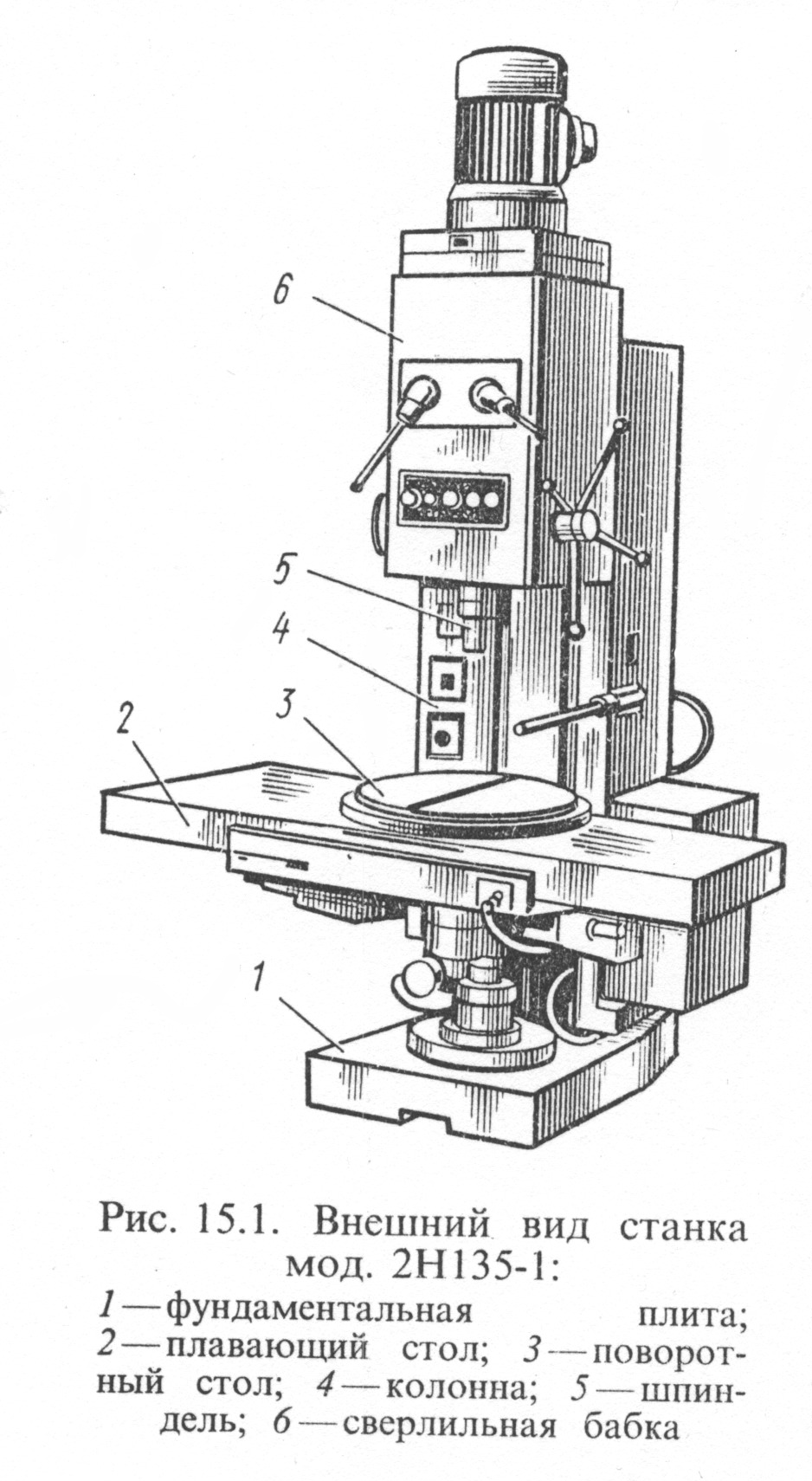 Наибольшее распространение они получили в промышленности. На рис. 1 показан внешний вид станка мод. 2Н135-1, который выпускается взамен станка мод. 2Н135 и отличается от него наличием "плавающего" поворотно-передвижного стола, позволяющего вести обработку нескольких отверстий без перезакрепления обрабатываемой детали.