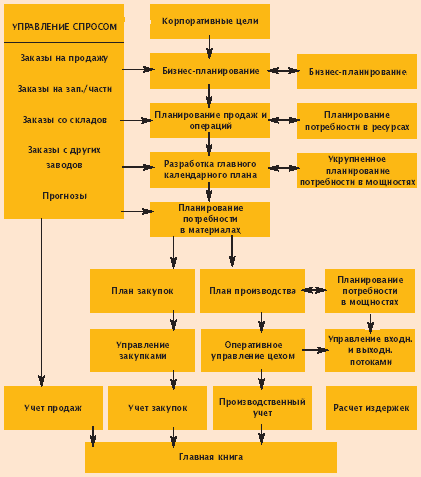 В системе «Галактика» реализованы основные функциональные элементы системы, поддерживающей стандарт MRP II :