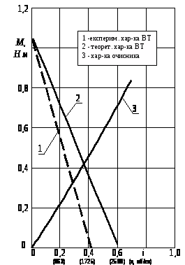 Для порівняння результатів експериментальних і теоретичних досліджень були побудовані моментні характеристики приводу та очисника, які зображені на рис. 10. Перетинання характеристик приводу з характеристикою очисника дозволило визначити справжню швидкість обертання фільтроелемента. Відносна похибка визначення кутової швидкості обертання фільтроелемента очисника теоретичним та експериментальним способами склала не більш 20–25%.