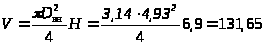 F>вн>=πD>вн>Н>1>+πD>вн>2/4=3,14·4,93·6,9+3,14·>:>4,932/4=125,9 м2