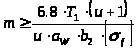 Подставляя Y>f>=3,7 F>t>=0,4H b=1 мм m=0.5 K>fB>=1 K>fv>=1.4[>f>]=55 Мпа, получаем