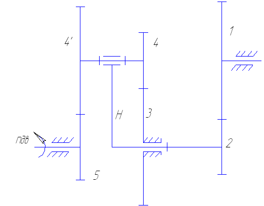 Число степеней свободы зубчатого механизма равно 1, следовательно, данный механизм является планетарным.