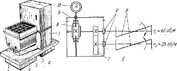 Во время эксплуатации машины возможны неисправности, которые могут быть устранены обслуживающим персоналом. Так, если при нажатии на рукоятку подъема ограждающего щитка последний не поднимается, значит, весьма вероятно, что: ослабло крепление каркаса щитка на оси. В этом случае необходимо зачистить поверхность эксцентрика от грязи и смазать его густой смазкой, подтянуть хомутики гайками. Если при включении электродвигателя машина останавливается, необходимо устранить ее перегруз. Для этого следует вручную повернуть маховик, нажать кнопку "Возврат" магнитного пуска. При включении привода смесителя электродвигатель передает вращение вариатору, который через ремень вращает шкив редуктора. Шкив, укрепленный на червяке, передает вращения червячному колесу. С вала червячного колеса вращение передается зубчатым колесам, которые находятся в зацеплении с колесами свободно сидящими на валу. В зависимости от положения рукоятки муфта соединяется с соответствующим зубчатым колесом. При этом изменяется передаточное отношение и смеситель вращается с определенной скоростью.