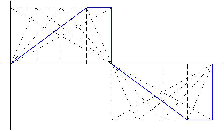 Графічно інтегруючи цю діаграмму аналога прискорення, будуємо спочатку діаграму аналога швидкості, а потім і діаграму переміщення тарілки штовхача.