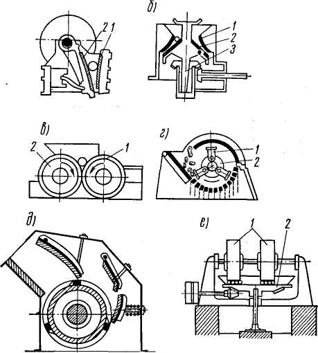 Рисунок 1.4 Схемы дробилок ударного действия( д- роторного типа, г- молоткового типа)