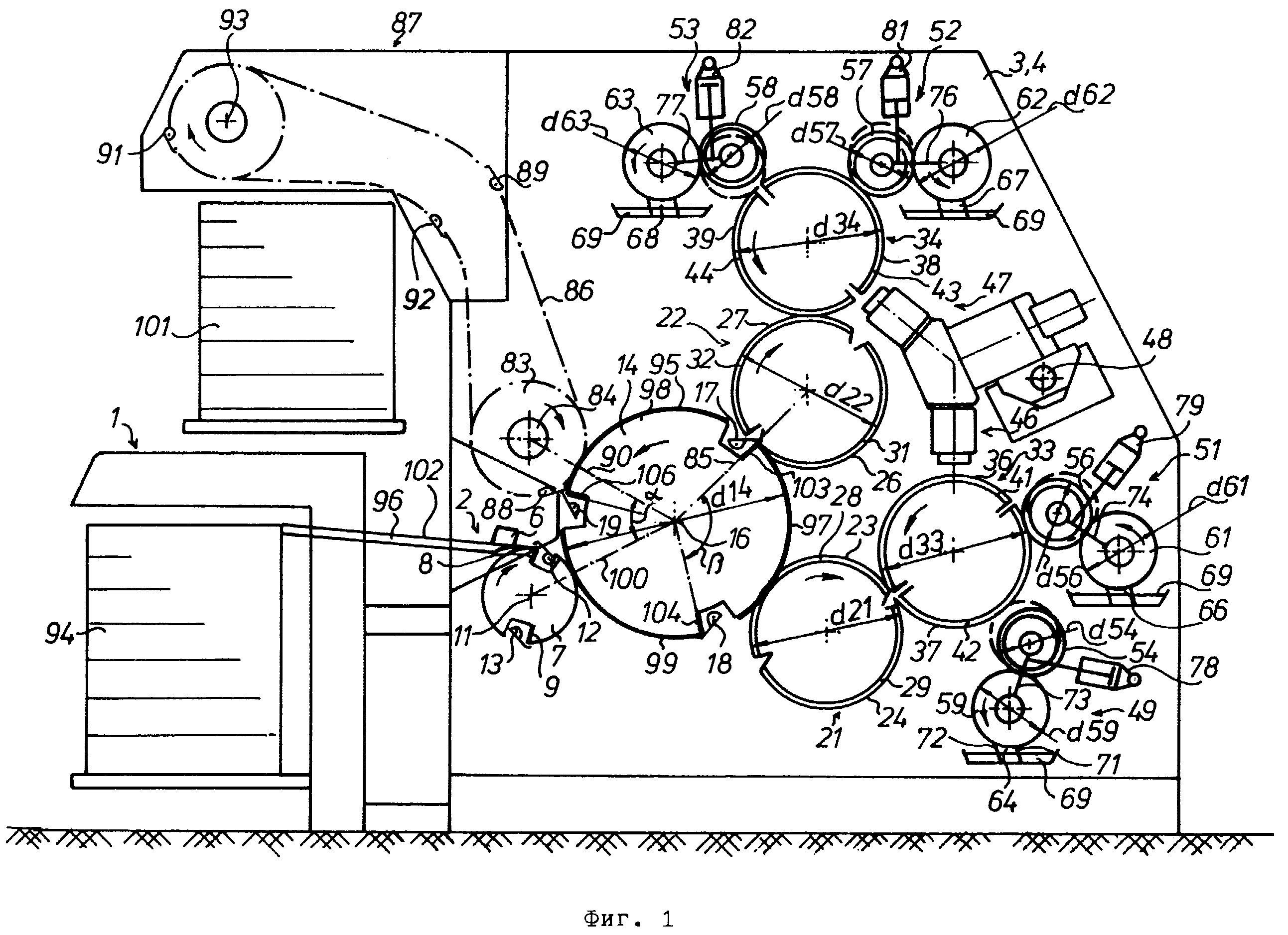 Изобретение относится к листовой ротационной машине для офсетной печати многокрасочных оттисков и листовой ротационной машине для печати многокрасочных оттисков. В основу изобретения положена задача создать листовую ротационную машину для офсетной печати и листовую ротационную печатную машину, которая позволила бы запечатывать листы как с длиной листа, пригнанной к однократному номинальному диаметру, так и с длиной листа, пригнанной к двойному номинальному диаметру. Листовая ротационная машина для офсетной печати согласно изобретению состоит из формного цилиндра (31), офсетного цилиндра (22) и первого печатного цилиндра (12), оснащенного множеством управляющих систем (14, 16, 17) захвата, и второго печатного цилиндра (86), снабженного, по меньшей мере, одной управляемой системой (83) захватов. Первый или второй печатный цилиндры расположены с возможностью избирательного взаимодействия с офсетным цилиндром (22). Листовая ротационная печатная машина согласно изобретению состоит из формного цилиндра (31) и первого печатного цилиндра (12), снабженного множеством управляемых систем захватов, и второго печатного цилиндра (86), снабженного, по меньшей мере, одной управляемой системой (83) захватов. Первый или второй печатные цилиндры расположены с возможностью избирательного взаимодействия с формным цилиндром.