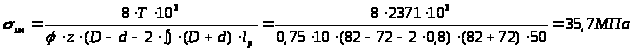 где d – внутренний диаметр шлицев; l – расчетная длина, путем использования которой учитывается неравномерность распределения крутящего момента вдоль ступицы зубчатого колеса, насаженного на шлицевый вал с зазором: