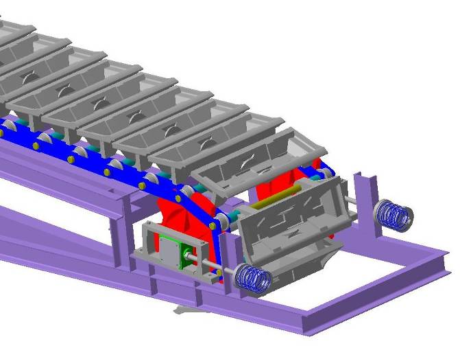 Во втором разделе выполнен литературный анализ конструктивных разработок подобных агрегатов, с целью выяснения существующих способов решения подобных проблем на других литейных агрегатах. Также подробно рассмотрена конструкция литейного конвейера ЛК-3.