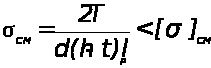 []>СМ> - допускаемое напряжение смятия: при стальной ступице и спокойной нагрузке []>СМ>=80÷220 МПа; при чугунной - вдвое меньше. В случае неравномерной или ударной нагрузки []>СМ> - на 25÷40% ниже.