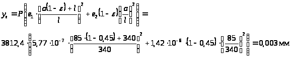 Перемещение переднего конца шпинделя от податливости опор: