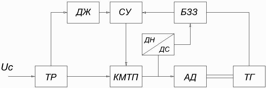 Оскільки струм в ланці випрямленої напруги не міняє свого знаку незалежно від режиму роботи двигуна, а ковзання свій знак змінює, то знак задаючої напруги U>З> повинен зберігатися незмінним незалежно від знаку ковзання.