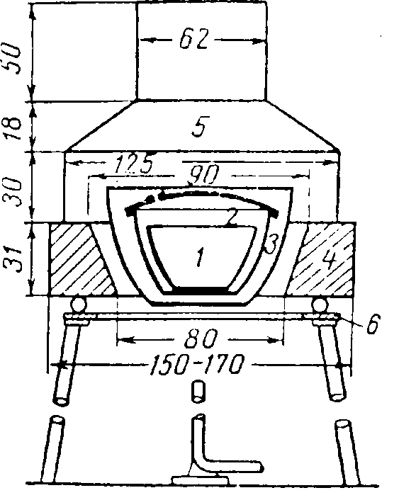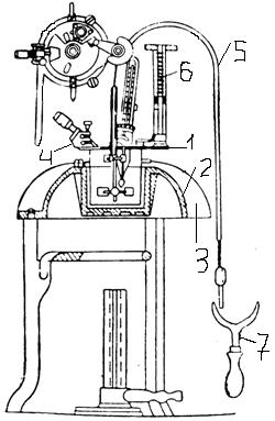 Чашечку с навеской топлива помещают в кольцо токоведущего штифта. Вытянутая средняя часть укрепленного отрезка проволоки погружается в нефтепродукт, находящийся в чашечке.