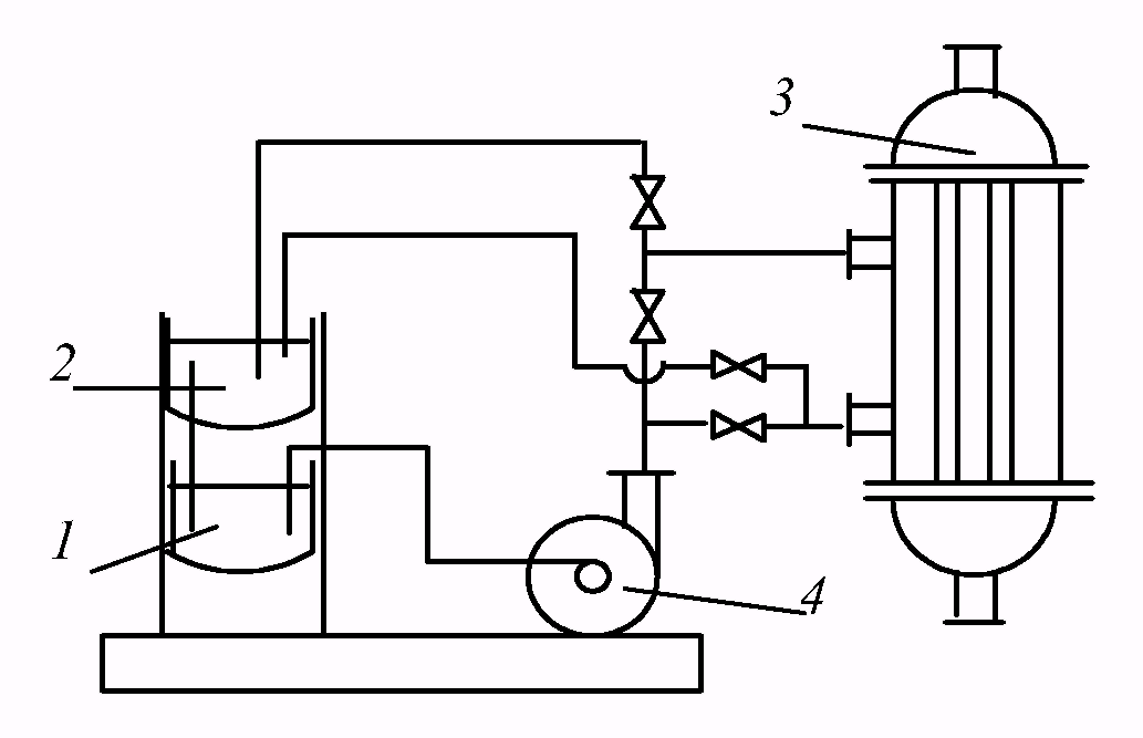1 - бак; 2 - отстойник; 3 - теплообменник; 4 - насос