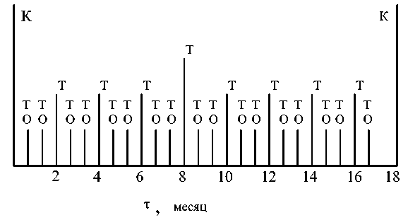 Ремонтный цикл связывает виды ремонтов и сроки проведения их по месяцам (рис. 2.2).