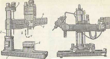 Радиально сверлильные станки используют для сверления отверстий в деталях больших размеров. На этих станках совмещение осей отверстий и инструмента достигается перемещением шпинделя станка относительно неподвижной детали.