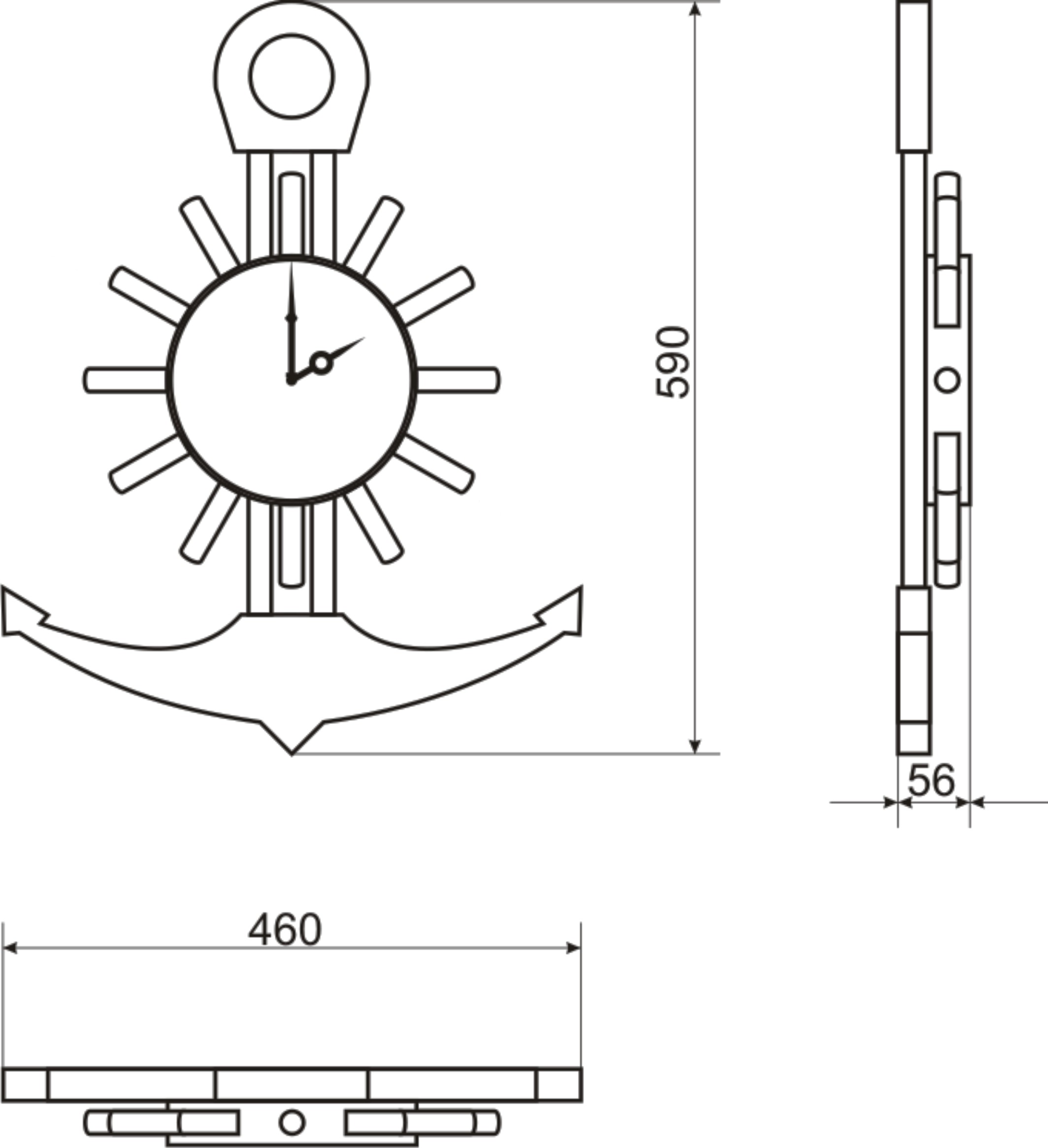 В нашей творческой работе мы предоставляем Вашему вниманию настенные часы «Морская тематика», изготовленная в виде корабельного якоря и штурвала. Эти часы "идут в ногу со временtм": двенадцать ручек штурвала представляют собой часовые промежутки времени, стрелки часов – точный ориентир во временном пространстве, которые, в свою очередь, символизируют, так необходимый любому мореплавателю компас! Эти оригинальные настенные часы будут прекрасно смотреться в любой комнате: и на кухне, и в гостиной и станут прекрасным подарком на любой праздник.