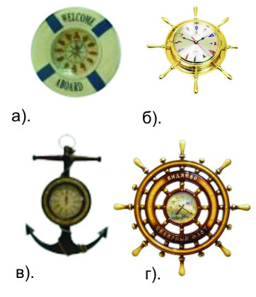 б). Часы в форме штурвала.
