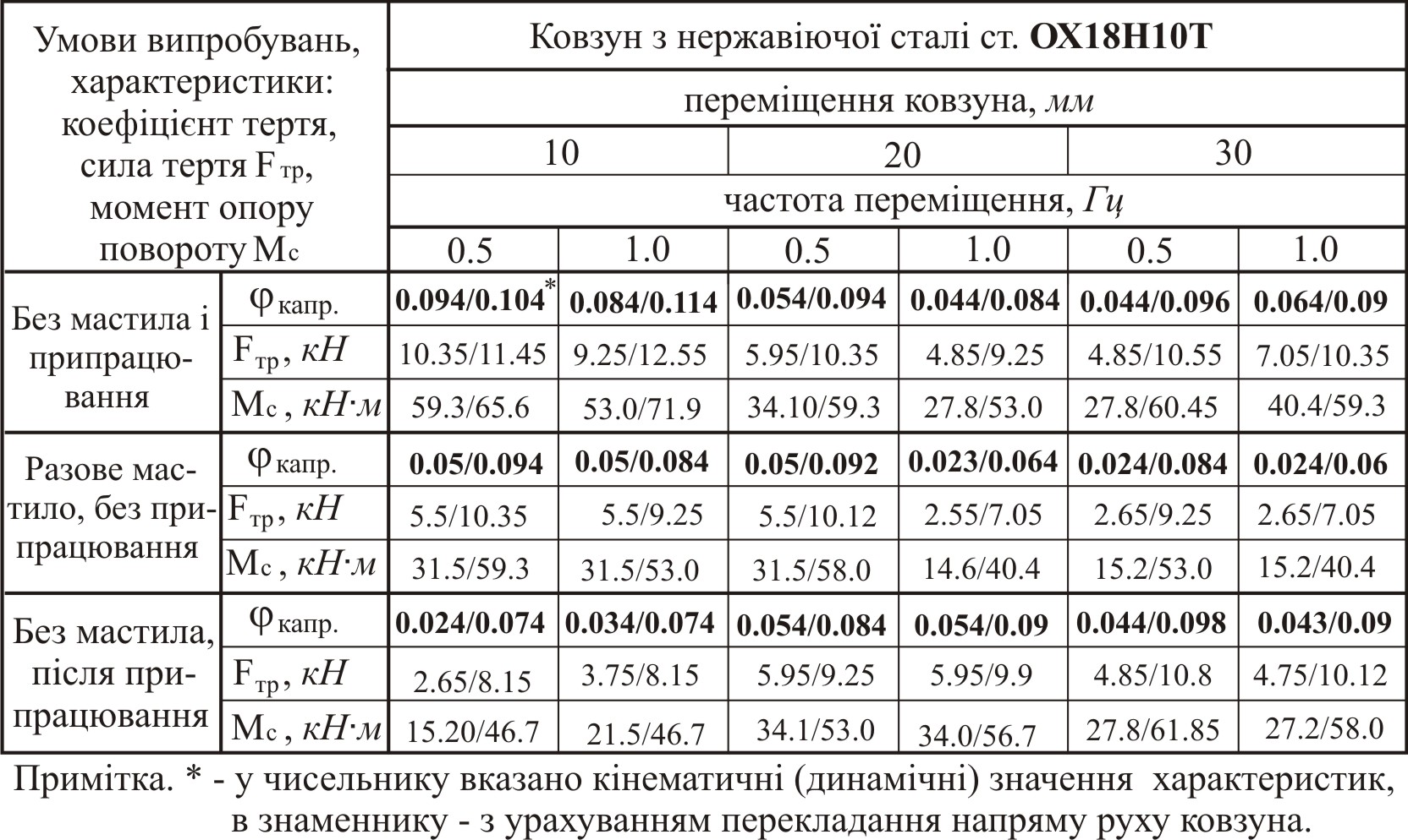 - встановити експлуатаційні характеристики і закономірності впливу на величину та стабільність коефіцієнта тертя питомого навантаження, швидкості ковзання та температури на контактній поверхні тертя;