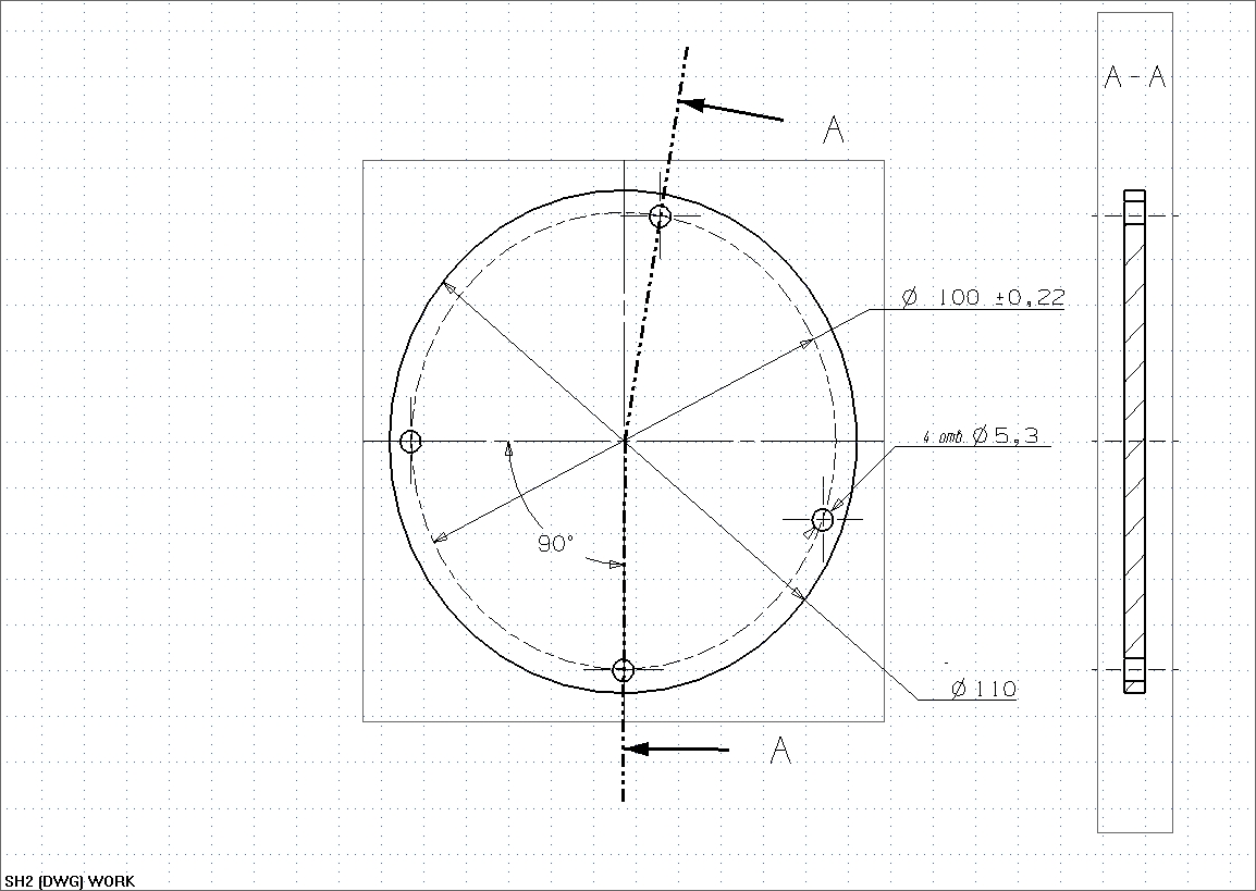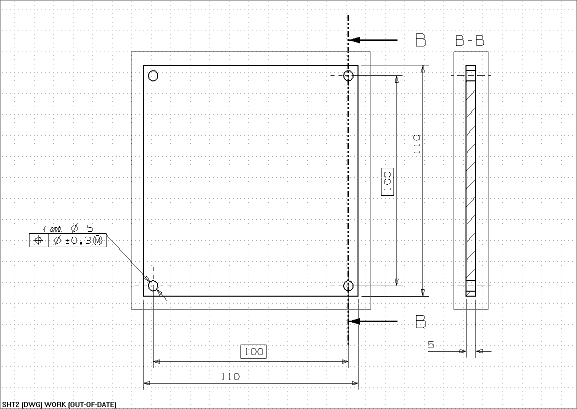 Эскиз детали плита с использованием позиционного допуска.
