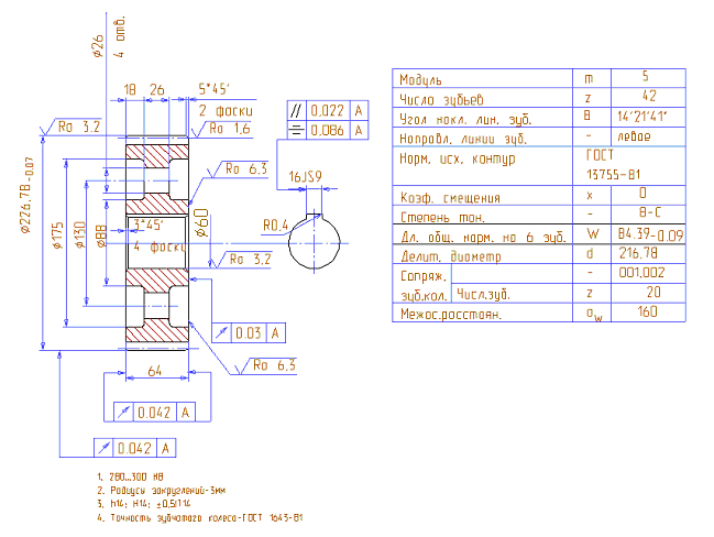 3)по боковой поверхности зубьев и посадкой 9H/9g : 38*1,25* 9g