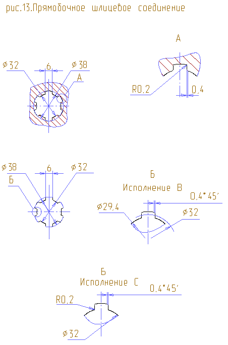 Эскизы прямобочного шлицевого соединения рис.13.