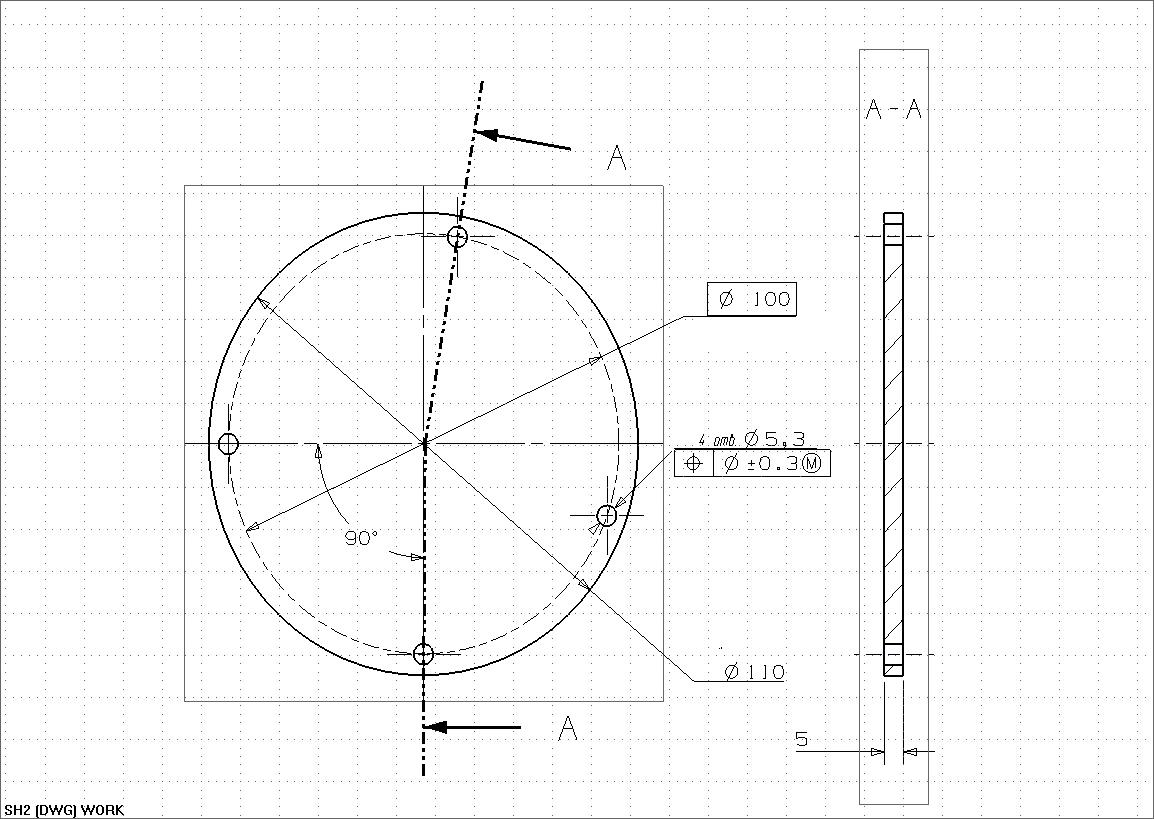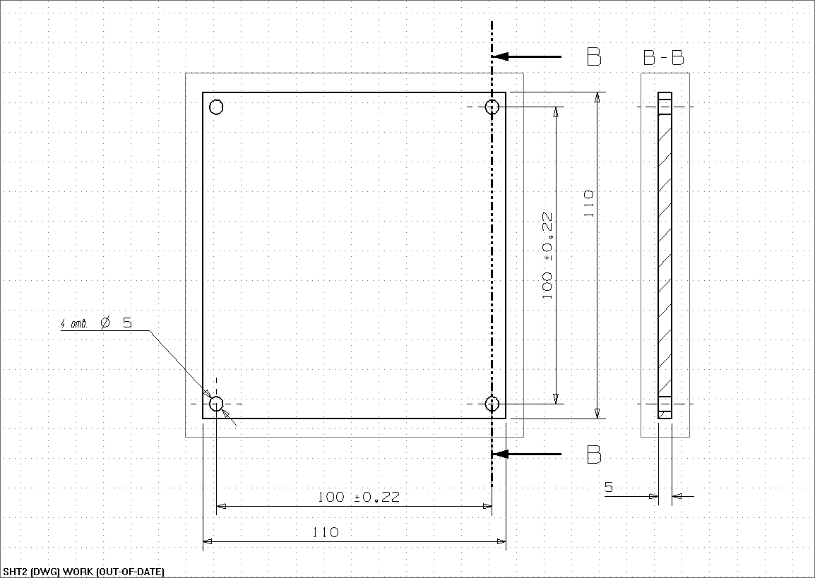 Эскиз детали плита с использованием допусков на позиционные размеры.