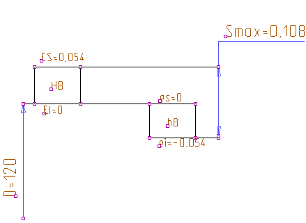 Возможный S>min>=0 (заданный 0,005мм).