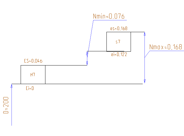3. Выбор посадки с натягом. Номинальный размер Ø200мм. Требуется выбрать посадку, в которой обеспечивается наибольший натяг – 0,160мм, и наименьший натяг – 0,050мм: