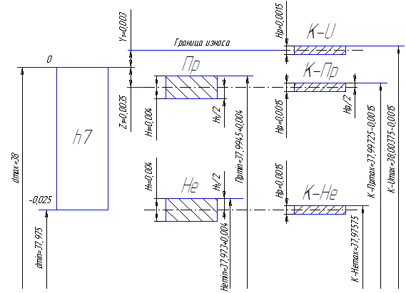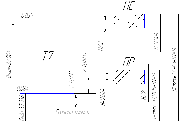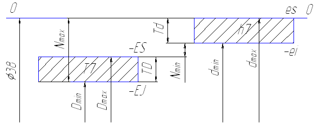 Изобразим схему посадки Ø38 T7/h7 на Рисунке 1.5.